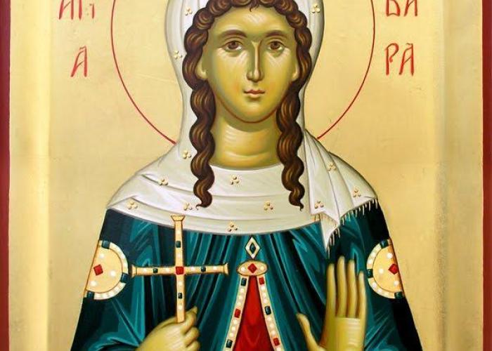 Sfânta fecioară Varvara, cu prea înţelepte şi blânde cuvinte mustrând deşertăciunea zeilor celor fără de suflet, mărturisea şi preamărea numele lui Iisus Hristos şi se lepădă de toate deşertăciunile pământeşti, de bogăţii şi de mângâierile lumeşti, dorind pe cele cereşti.